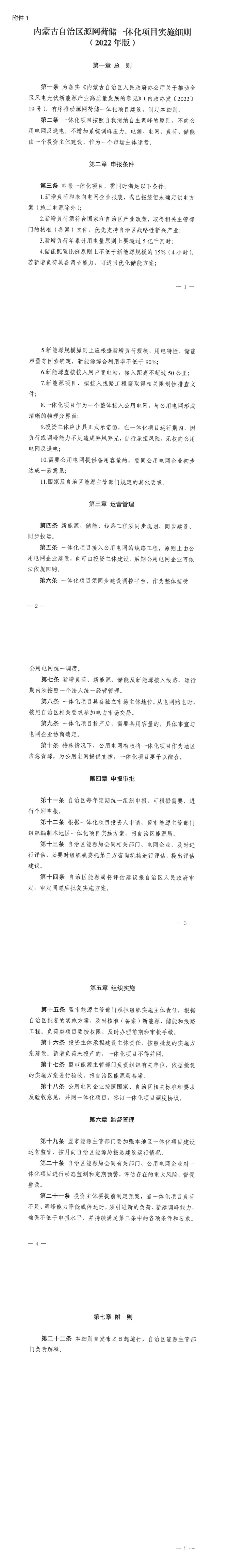 7月27日,內(nèi)蒙古能源局發(fā)布《內(nèi)蒙古自治區(qū)源網(wǎng)荷儲(chǔ)一體化項(xiàng)目實(shí)施細(xì)則(2022年版)》,其中提出,一體化項(xiàng)目按照自我消納自主調(diào)峰的原則,不向公用電網(wǎng)反送電,不增加系統(tǒng)調(diào)峰壓力。電源、電網(wǎng)、負(fù)荷、儲(chǔ)能由一個(gè)投資主體建設(shè),作為一個(gè)市場(chǎng)主體運(yùn)營。