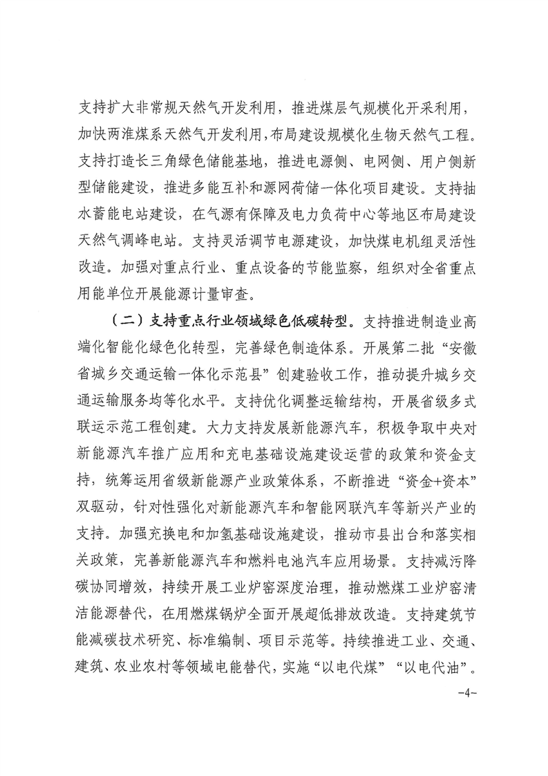 通知指出,支持企業(yè)開(kāi)展節(jié)能減煤技術(shù)改造,重點(diǎn)削減非電力用煤,提高電力用煤比例。大力支持可再生能源高比例應(yīng)用,支持光伏發(fā)電和風(fēng)電資源開(kāi)發(fā),推進(jìn)生物質(zhì)能發(fā)電、清潔供暖、熱電聯(lián)產(chǎn)、生物質(zhì)天然氣等多元化發(fā)展。支持?jǐn)U大非常規(guī)天然氣開(kāi)發(fā)利用,推進(jìn)煤層氣規(guī)?;_(kāi)采利用,加快兩淮煤系天然氣開(kāi)發(fā)利用,布局建設(shè)規(guī)?;锾烊粴夤こ?。支持打造長(zhǎng)三角綠色儲(chǔ)能基地,推進(jìn)電源側(cè)、電網(wǎng)側(cè)、用戶側(cè)新型儲(chǔ)能建設(shè),推進(jìn)多能互補(bǔ)和源網(wǎng)荷儲(chǔ)一體化項(xiàng)目建設(shè)。支持抽水蓄能電站建設(shè),在氣源有保障及電力負(fù)荷中心等地區(qū)布局建設(shè)天然氣調(diào)峰電站。支持靈活調(diào)節(jié)電源建設(shè),加快煤電機(jī)組靈活性改造。加強(qiáng)對(duì)重點(diǎn)行業(yè)、重點(diǎn)設(shè)備的節(jié)能監(jiān)察,組織對(duì)全省重點(diǎn)用能單位開(kāi)展能源計(jì)量審查。