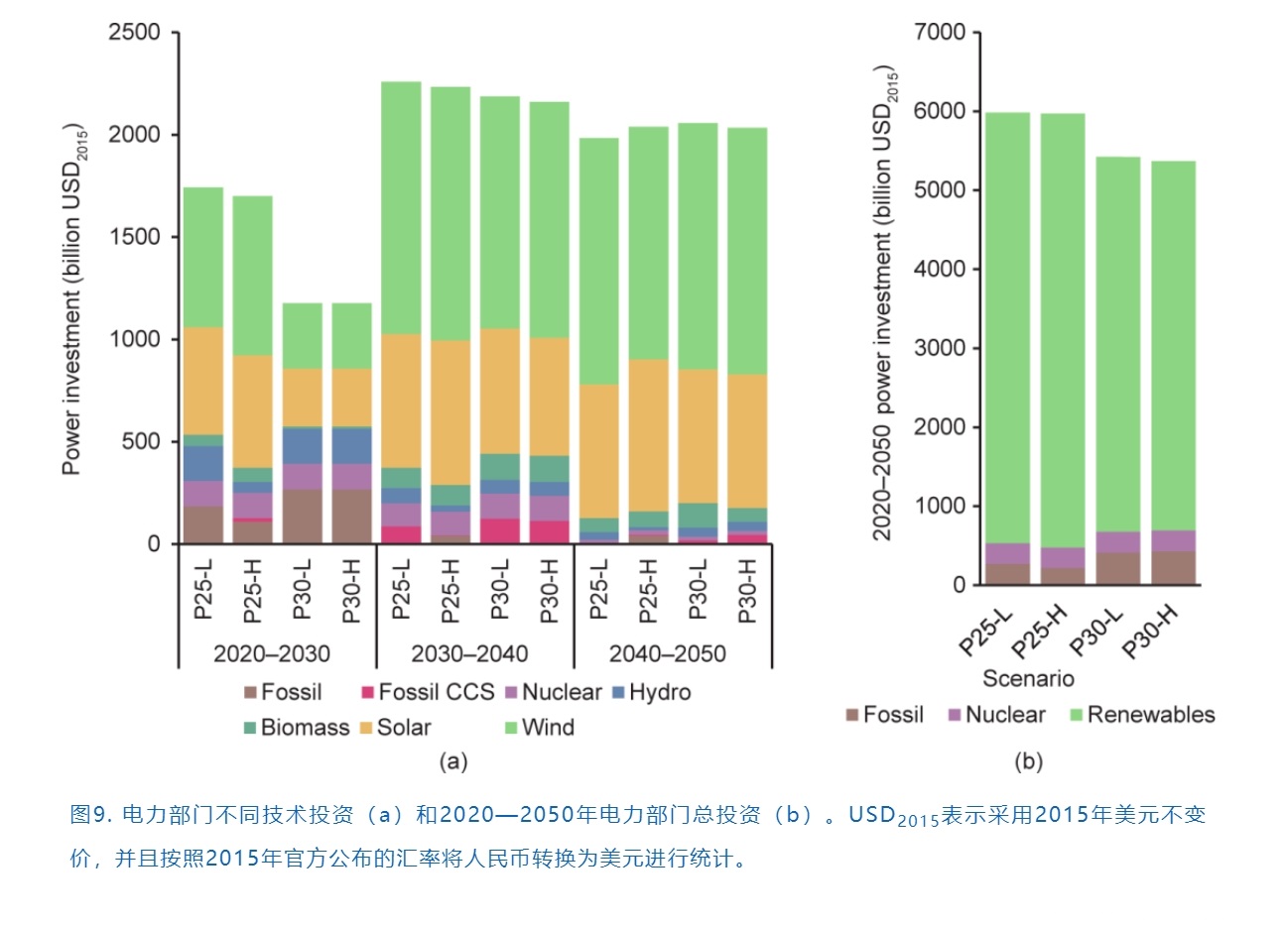 (2)中國(guó)需要在電力部門快速推廣可再生能源取代化石能源,同時(shí)由于可再生能源的高滲透率給電力系統(tǒng)的供需匹配帶來(lái)挑戰(zhàn),中國(guó)應(yīng)當(dāng)重視儲(chǔ)能設(shè)施的配套發(fā)展。
