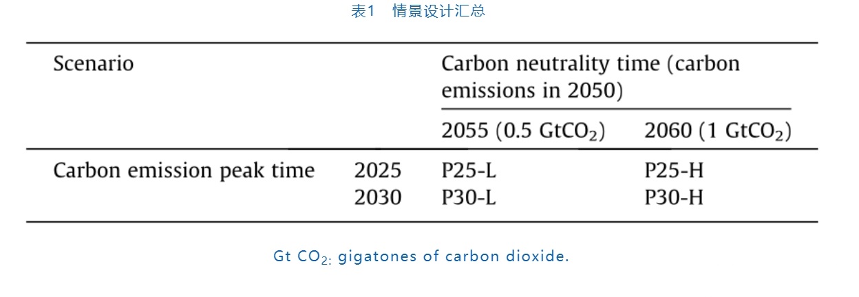 為了更加全面地評(píng)估能源轉(zhuǎn)型的影響,一些研究將研究邊界擴(kuò)大到整個(gè)能源系統(tǒng)。已有研究通過(guò)整合國(guó)家政策和技術(shù)發(fā)展預(yù)期,建立了自上而下的減排目標(biāo),并預(yù)測(cè)了不同政策下二氧化碳的排放量。目前也有一些研究評(píng)估了碳減排對(duì)空氣質(zhì)量、能源安全和水資源節(jié)約方面的協(xié)同效益。然而,這些研究都按照以往的2 ℃或1.5 ℃溫升控制目標(biāo)設(shè)計(jì)情景,并沒(méi)有以碳中和目標(biāo)為導(dǎo)向。