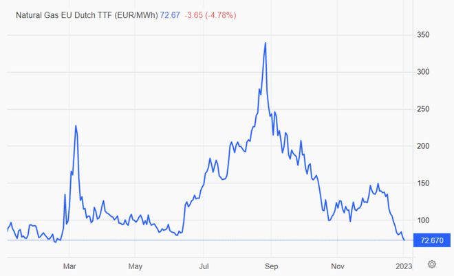 圖:歐洲天然氣價(jià)格走勢(€/MWh)