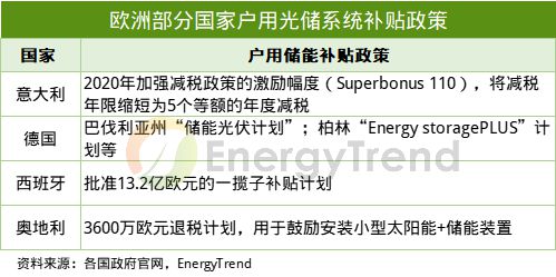 歐洲部分國家戶用儲(chǔ)能補(bǔ)貼政策