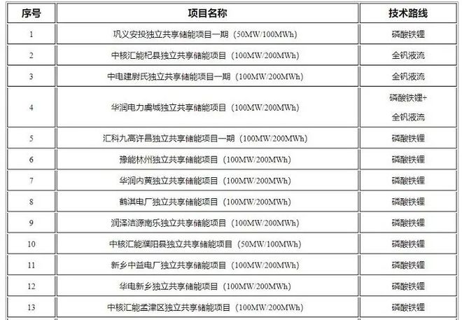 河南省第二批省級(jí)獨(dú)立儲(chǔ)能電站示范項(xiàng)目名單