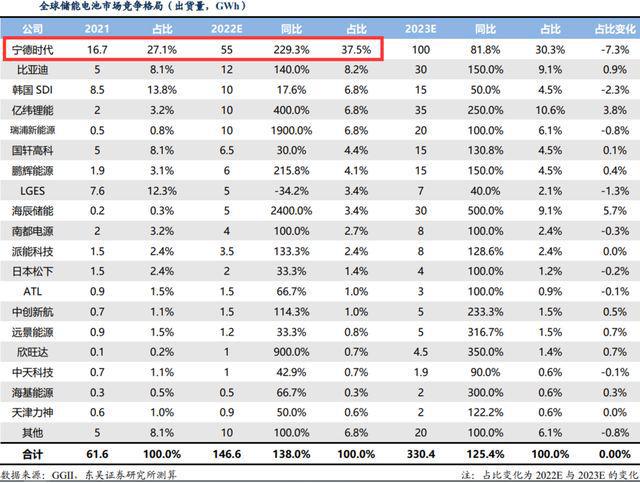 在儲(chǔ)能制造業(yè)的最后一環(huán)——產(chǎn)品端,類似光伏行業(yè)的一體化組件企業(yè),其特點(diǎn)是“一超多強(qiáng)”,或者說(shuō)是一超多不強(qiáng),寧王一家獨(dú)大。