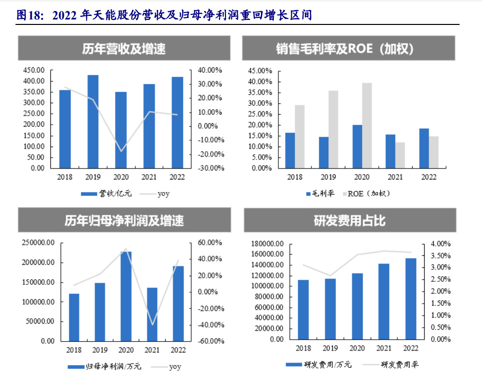 天能股份是一家以電動輕型車動力電池業(yè)務為主,集電動特種車動力電池、新 能源汽車動力電池、汽車起動啟停電池、儲能電池、3C 電池、備用電池、燃料電池 等多品類電池的研發(fā)、生產(chǎn)、銷售為一體的國內(nèi)電池行業(yè)領(lǐng)先企業(yè)。 財務方面近期天能股份業(yè)績逐漸回暖, 2022 年全年天能股份實現(xiàn)營業(yè)收入 418.82 億元,同比增長 8.18%;歸母凈利潤 19.08 億元,同比增長 39.35%。