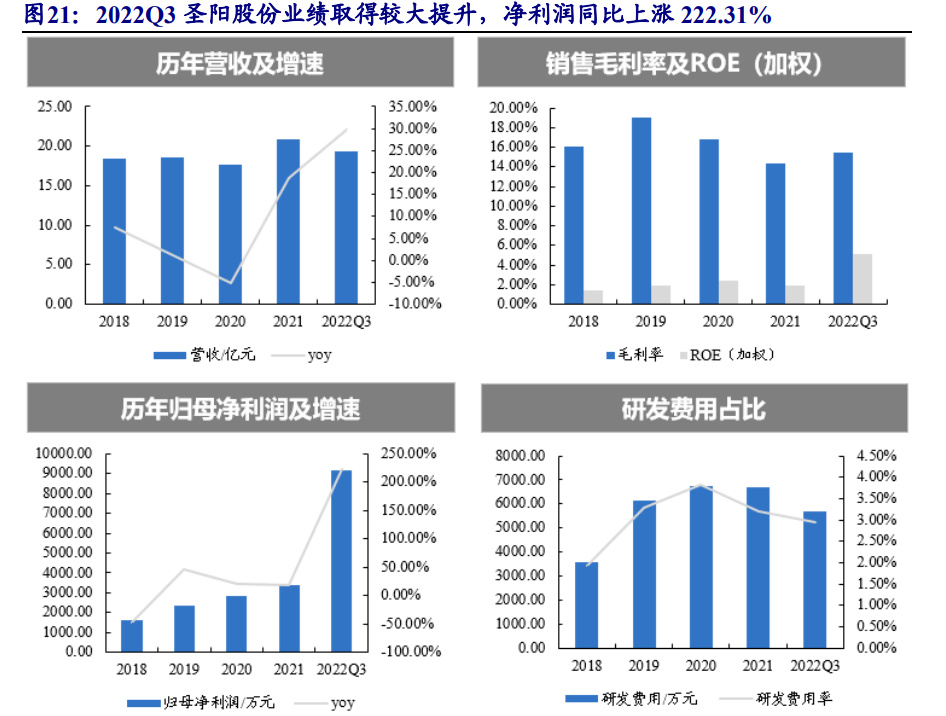 圣陽股份是國內(nèi)最早自主研發(fā)和生產(chǎn)閥控密封式鉛酸蓄電池的企業(yè)之一,為國 際先進鉛酸蓄電池聯(lián)合會(ALABC)成員、中國電池工業(yè)協(xié)會常務理事單位、中國電 器工業(yè)協(xié)會鉛酸蓄電池分會理事單位、中國照明學會新能源照明專委會會員、中國 電源學會會員等。圣陽股份是山東省第一批高新技術(shù)企業(yè),擁有山東省人民政府認 定的企業(yè)技術(shù)中心和山東省科技廳認定的高能環(huán)保鉛酸蓄電池工程技術(shù)研究中心, 擁有多項核心技術(shù)。 財務方面,2022Q3 圣陽股份業(yè)績?nèi)〉幂^大提升,營業(yè)收入達到 19.32 億元同比 上漲 29.66%;凈利潤達到 9155.12 萬元同比上漲 222.31%。
