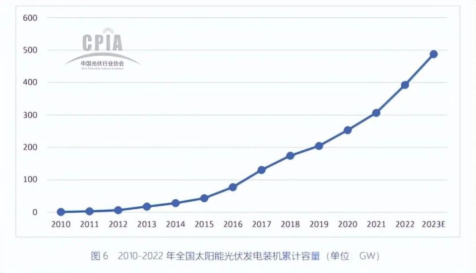 2020年9月,國家主席習(xí)近平在第七十五屆聯(lián)合國大會上鄭重宣布:“中國將提高國家自主貢獻力度,采取更加有力的政策和措施,二氧化碳排放力爭于2030年前達到峰值,努力爭取2060年前實現(xiàn)碳中和”,由此拉開了“雙碳”目標(biāo)這一新時代發(fā)展主題的帷幕。雙碳背景下,推動能源革命、構(gòu)建以新能源為主體的新型電力系統(tǒng)成為全球共識。據(jù)中國光伏行業(yè)協(xié)會(CPIA)的統(tǒng)計,2018年由于“531”光伏新政出臺,淘汰落后中小企業(yè)產(chǎn)能,行業(yè)加速出清,國內(nèi)新增光伏裝機量44.3GW,同比下降16.4%。2019年光伏競價政策出臺較晚、項目建設(shè)時間短,國內(nèi)光伏新增裝機再度下降至30.1GW,同比下降32%。2022年全國新增光伏并網(wǎng)裝機容量87.41GW,累計光伏并網(wǎng)裝機容量達到392.6GW,新增和累計裝機容量均為全球第一。全年光伏發(fā)電量為4,276億千瓦時,同比增長30.8%,約占全國全年總發(fā)電量的4.9%。預(yù)計2023年光伏新增裝機量超過95GW,累計裝機有望超過487.6GW。