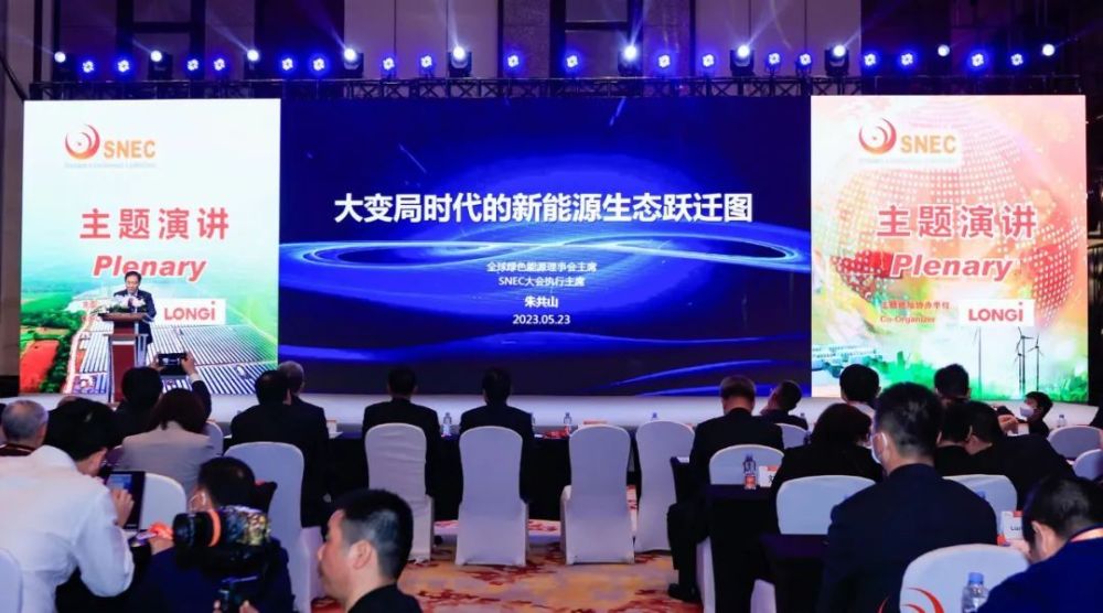 5月23日上午,在第十六屆SNEC全球光伏大會上,協(xié)鑫集團(tuán)董事長朱共山發(fā)表《大變局時(shí)代的新能源生態(tài)躍遷圖》主題演講。