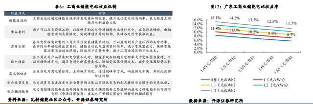 以廣東為代表的工商業(yè)較為發(fā)達的地區(qū)工商業(yè)儲能電站已經(jīng)具備了一定經(jīng)濟性。在廣東地區(qū),在僅考慮峰谷價差套利單一受益方式的情況下, 工商業(yè)儲能電站通過每天兩充兩放(一次谷充尖放、一次平充峰放),初始投資成本為1.6元/Wh,最大峰谷價差在1.1元/度的情況下,其資 本金收益率可達9.4%,投資回收期在8年之內(nèi)。在鋰電成本持續(xù)下降的情況下,改投資回收期有望進一步縮短。