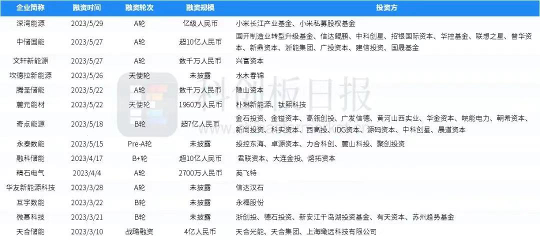 (圖:一級市場部分儲能領(lǐng)域企業(yè)融資情況;來源:財(cái)聯(lián)社創(chuàng)投通)