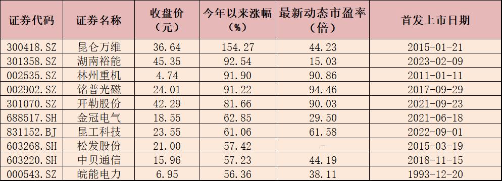表:今年以來(lái)漲幅居前十的儲(chǔ)能概念股一覽 制表:楚麗君