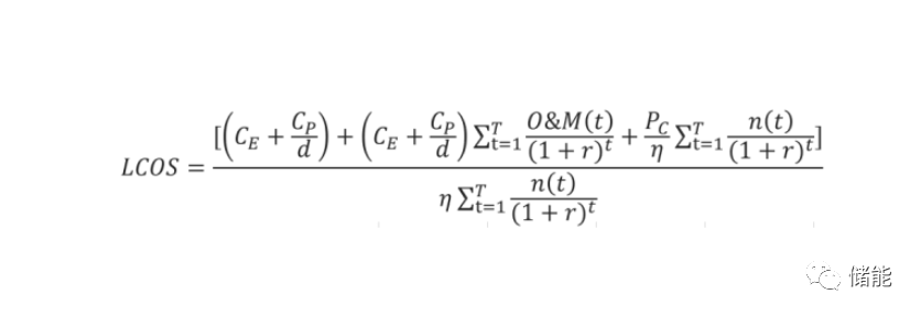相類似地,儲能的全生命周期成本即平準(zhǔn)化儲能成本(Levelized Cost of Storage,LCOS)。LCOS 可以概括為一項儲能技術(shù)的全生命周期成本除以其累計傳輸?shù)碾娔芰炕螂姽β?,反映了凈現(xiàn)值為零時的內(nèi)部平均電價,即該項投資的盈利點。平準(zhǔn)化儲能成本(LCOS)量化了特定儲能技術(shù)和應(yīng)用場景下單位放電量的折現(xiàn)成本,考慮了影響放電壽命成本的所有技術(shù)和經(jīng)濟參數(shù),可以與平準(zhǔn)化度電成本 (LCOE)類比,是進(jìn)行儲能技術(shù)成本比較的合適工具。