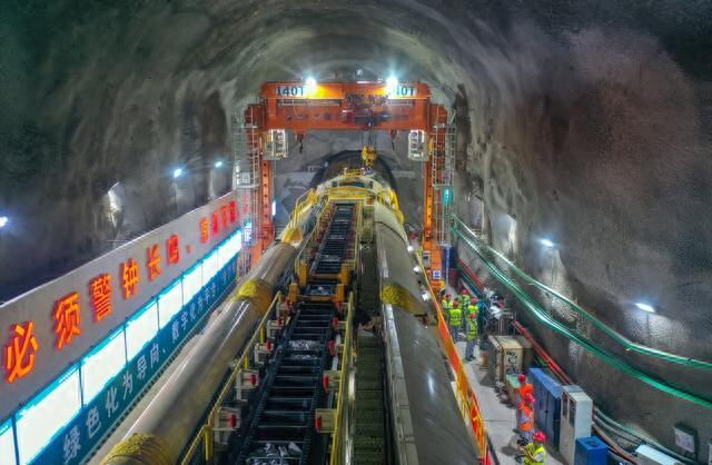 “天岳號(hào)”總長(zhǎng)87米、總重約900噸。施工作業(yè)時(shí),“天岳號(hào)”沿50度大傾角由下斜井往上爬行掘進(jìn),在中平洞實(shí)現(xiàn)6.53米和8米變徑,最終從上斜井駛出,可實(shí)現(xiàn)兩級(jí)引水斜井全斷面連續(xù)開挖、初支一次成型。此次“天岳號(hào)”成功應(yīng)用,有助于我國(guó)抽水蓄能電站綠色智能建造。