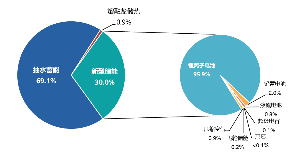 新型儲(chǔ)能是指除抽水蓄能以外的新型儲(chǔ)能技術(shù),包括鋰離子電池、液流電池、壓縮空氣、飛輪儲(chǔ)能、儲(chǔ)熱蓄冷、氫儲(chǔ)能等。