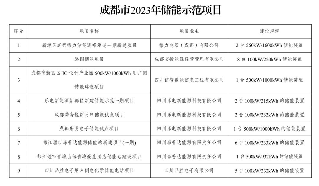 最高100萬(wàn)!成都市2023年儲(chǔ)能示范項(xiàng)目開始公示