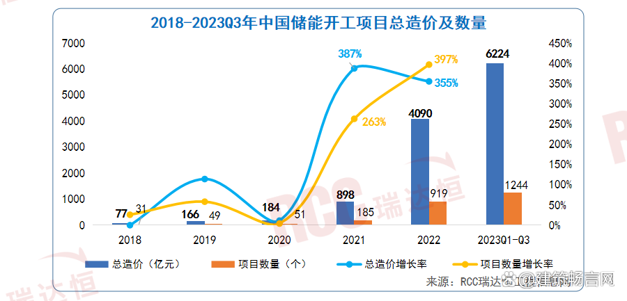 從RCC工程信息網(wǎng)項(xiàng)目數(shù)據(jù)庫(kù)中的儲(chǔ)能項(xiàng)目增長(zhǎng)數(shù)據(jù)也能看出,2023年的儲(chǔ)能項(xiàng)目明顯增多,僅2023年前三季度的項(xiàng)目數(shù)量就比2022年全年增加了35%,其中大部分為工商業(yè)儲(chǔ)能項(xiàng)目。