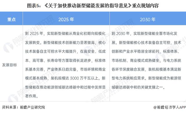 國家發(fā)展改革委、國家能源局聯(lián)合印發(fā)了《關(guān)于加快推動新型儲能發(fā)展的指導(dǎo)意見》,提出到2025年,實(shí)現(xiàn)新型儲能從商業(yè)化初期向規(guī)模化發(fā)展轉(zhuǎn)變。新型儲能技術(shù)創(chuàng)新能力顯著提高,核心技術(shù)裝備自主可控水平大幅提升,在高安全、低成本、高可靠、長壽命等方面取得長足進(jìn)步,標(biāo)準(zhǔn)體系基本完善,產(chǎn)業(yè)體系日趨完備,市場環(huán)境和商業(yè)模式基本成熟,裝機(jī)規(guī)模達(dá)3000萬千瓦以上。到2030年,實(shí)現(xiàn)新型儲能全面市場化發(fā)展。新型儲能核心技術(shù)裝備自主可控,技術(shù)創(chuàng)新和產(chǎn)業(yè)水平穩(wěn)居全球前列,標(biāo)準(zhǔn)體系、市場機(jī)制、商業(yè)模式成熟健全,與電力系統(tǒng)各環(huán)節(jié)深度融合發(fā)展,裝機(jī)規(guī)?;緷M足新型電力系統(tǒng)相應(yīng)需求。新型儲能在推動能源領(lǐng)域碳達(dá)峰、碳中和過程中發(fā)揮顯著作用。新型儲能成為能源領(lǐng)域碳達(dá)峰、碳中和的關(guān)鍵支撐之一。
