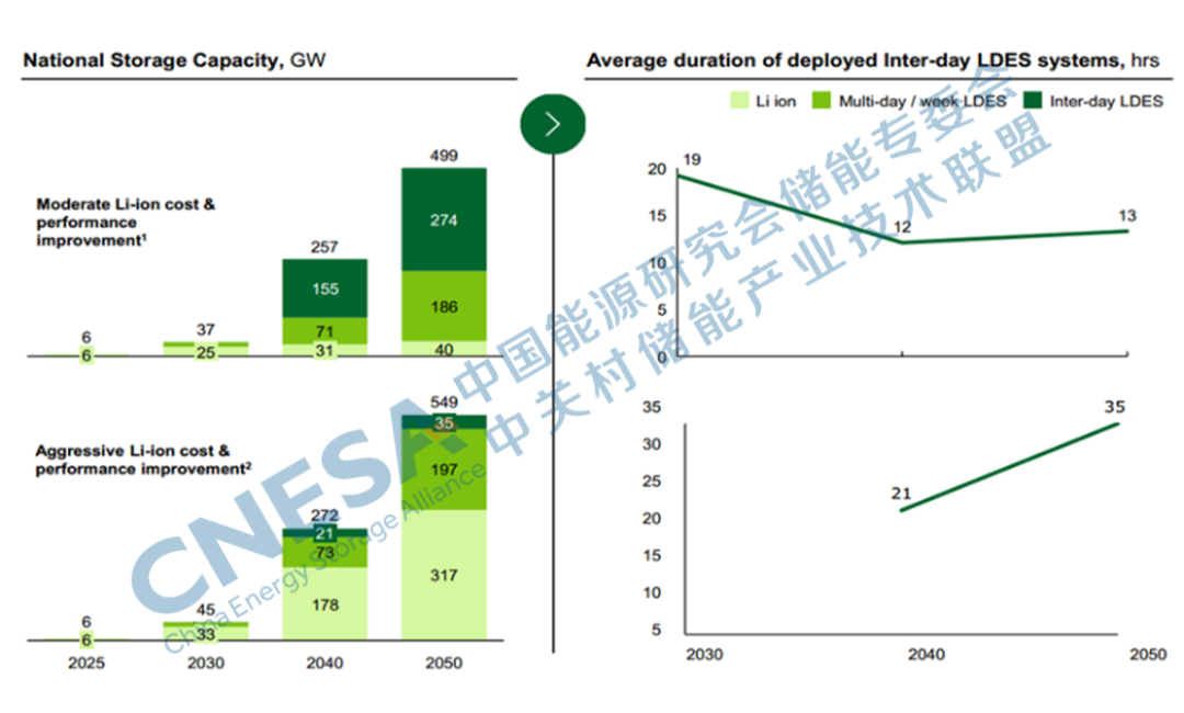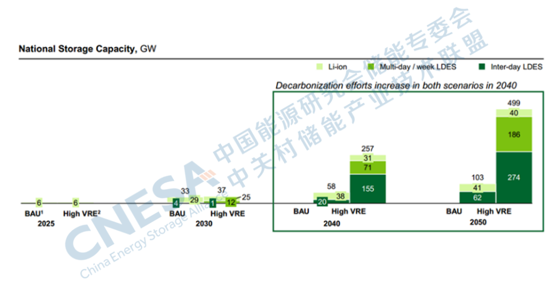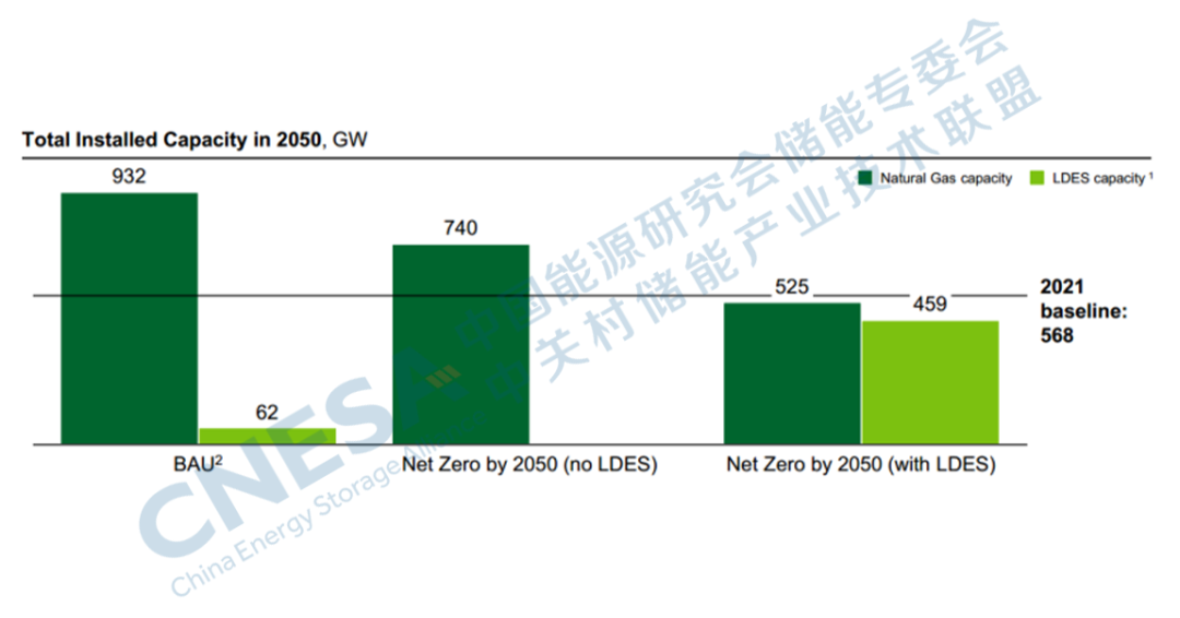 圖2:2050年實現(xiàn)BAU和Net Zero脫碳目標(biāo)下的LDES預(yù)測