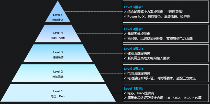 第一層是電芯和PACK提供商,主要聚焦產(chǎn)品性能提升和認(rèn)證的準(zhǔn)入,通過(guò)海外市場(chǎng)認(rèn)證,就可以供應(yīng)給系統(tǒng)集成商;第二層是電池系統(tǒng)提供商,聚焦交流系統(tǒng)的適配和產(chǎn)品標(biāo)準(zhǔn)化,在通過(guò)認(rèn)證之外,還要做好安全和消防等方面的設(shè)計(jì),主要面向還是系統(tǒng)集成商;第三層次是儲(chǔ)能系統(tǒng)供應(yīng)商,需要在電網(wǎng)準(zhǔn)入、后期運(yùn)維兩個(gè)方面滿要求。