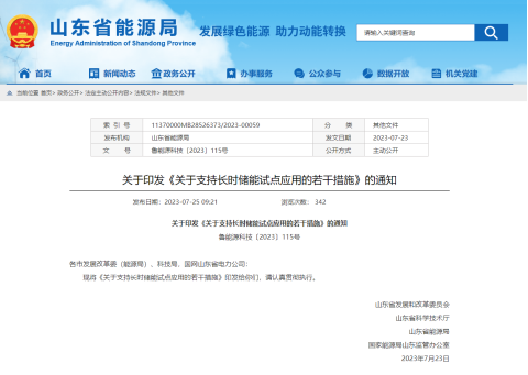 2023年7月,山東省出臺《關(guān)于支持長時儲能試點(diǎn)應(yīng)用的若干措施》,要求試點(diǎn)項(xiàng)目規(guī)模不低于10萬千瓦,滿功率放電時長不低于4小時,這是國內(nèi)首個支持長時儲能發(fā)展的地方性專項(xiàng)政策,長時儲能可享受優(yōu)先接入電網(wǎng)、優(yōu)先租賃、容量補(bǔ)償標(biāo)準(zhǔn)提高、減免輸配電價等優(yōu)惠政策。