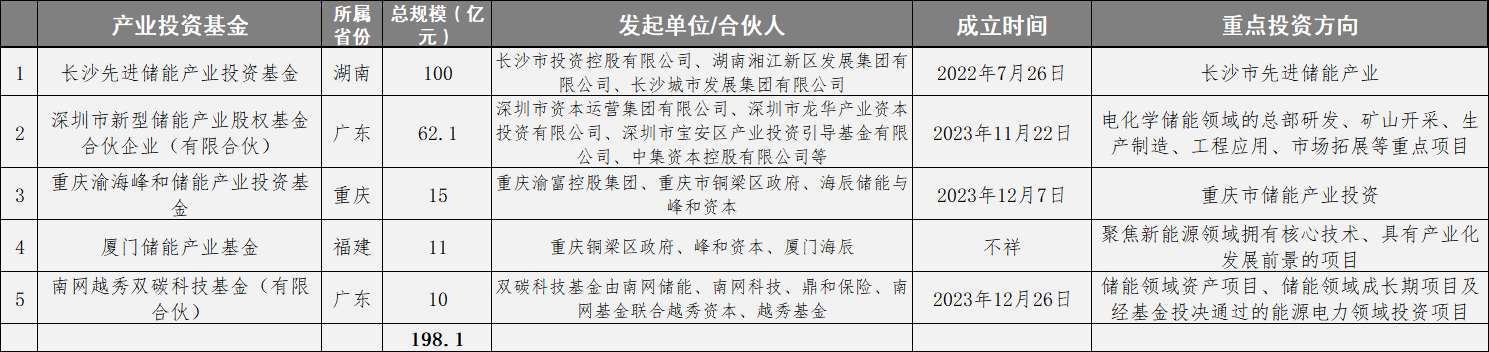 事實(shí)上,為服務(wù)“雙碳”戰(zhàn)略,促進(jìn)新型儲(chǔ)能產(chǎn)業(yè)發(fā)展,各地在推動(dòng)儲(chǔ)能產(chǎn)業(yè)發(fā)展上已推出多項(xiàng)舉措,其中“國(guó)家隊(duì)”的身影亦是頻頻出現(xiàn)。21世紀(jì)經(jīng)濟(jì)報(bào)道記者注意到,僅是近兩年重點(diǎn)投資方向聚焦儲(chǔ)能產(chǎn)業(yè)的基金就有5支,基金總規(guī)模達(dá)到了198.1億元。