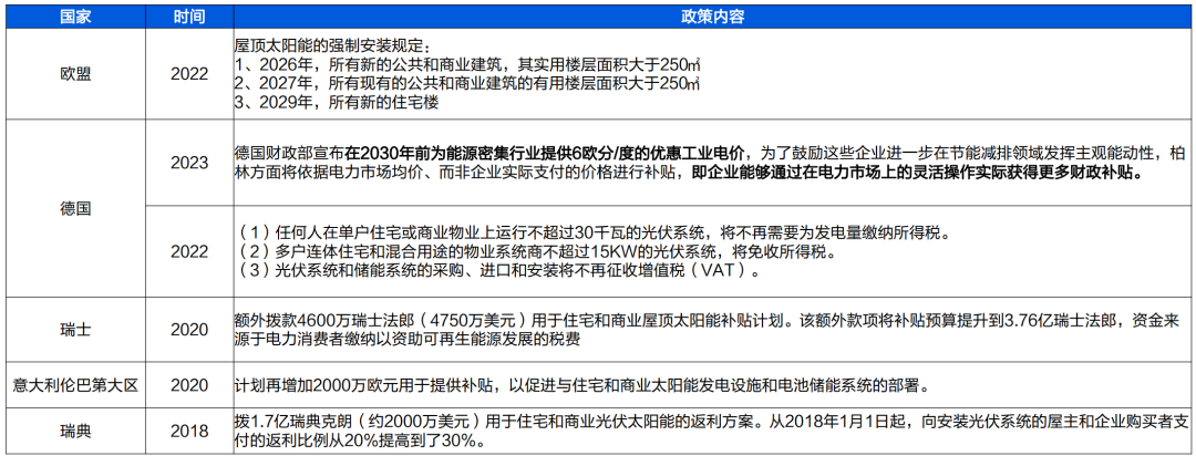 圖:歐洲部分國家和地區(qū)工商業(yè)儲能補貼政策