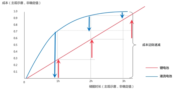 在結(jié)構(gòu)層面,鋰離子電池將功率輸出與能量儲存裝置緊密結(jié)合。如果要增加儲能時長,就要等比例增加電池成本。因此,4小時儲能系統(tǒng)的電池成本相當于1小時儲能系統(tǒng)成本的4倍。鋰離子電池在長時儲能領(lǐng)域并不具備經(jīng)濟性。
