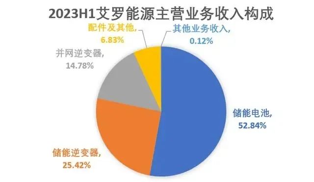 根據(jù)招股書披露,艾羅能源的主營業(yè)務結構如下圖所示,2023年1-6月公司各項產品中儲能逆變器收入占比25.42%;儲能電池收入占比52.84%,并網(wǎng)逆變器收入占比14.78%,配件及其他收入占比6.83%。