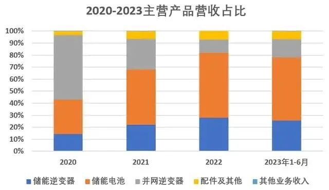 值得注意的是,2020年公司儲能業(yè)務占比尚未如此之高。2020年并網(wǎng)逆變器產品占總營收的53.85%,2021年公司明顯調整了產品側重,減少并網(wǎng)逆變器的份額,著重投入儲能電池和儲能逆變器領域,業(yè)務發(fā)展更聚焦。