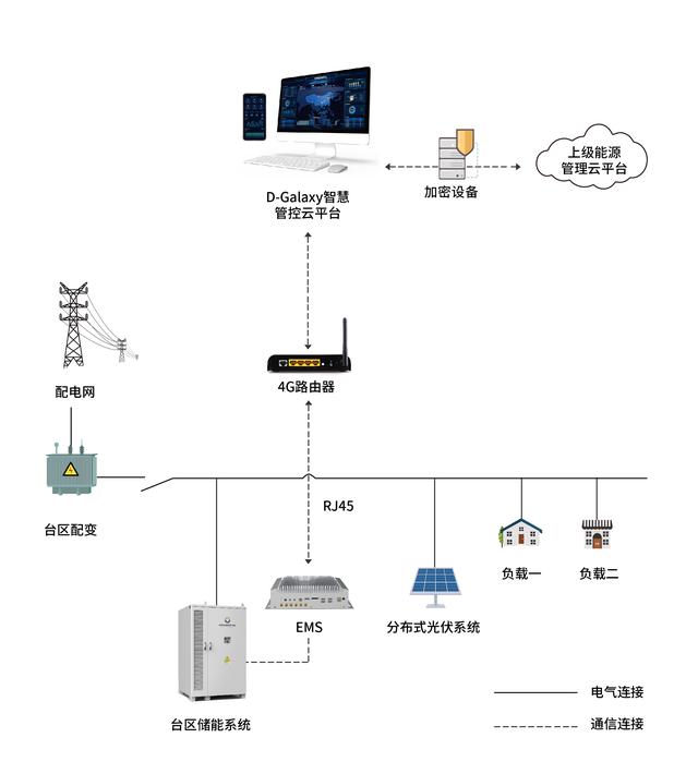 臺(tái)區(qū)的儲(chǔ)能系統(tǒng)不是獨(dú)立運(yùn)行的,建立臺(tái)區(qū)間互聯(lián)互通的智能運(yùn)維體系,結(jié)合臺(tái)區(qū)負(fù)荷特性進(jìn)行智能化的管理和調(diào)度,才能充分發(fā)揮其在電能治理方面的重要作用。弘正數(shù)字化儲(chǔ)能系統(tǒng)可以實(shí)現(xiàn)多個(gè)臺(tái)區(qū)間互聯(lián)互供,緩解負(fù)荷尖峰,均衡負(fù)載,提高剩余容量的利用率;同時(shí),通過(guò)接入D-Galaxy智慧儲(chǔ)能管控平臺(tái)加速臺(tái)區(qū)間信息交互及優(yōu)化調(diào)控,實(shí)時(shí)監(jiān)測(cè)電網(wǎng)狀態(tài)和需求,快速響應(yīng)電網(wǎng)變化,完成控制系統(tǒng)能量管理策略和運(yùn)行模式判斷與切換,增加電力系統(tǒng)靈活性,助力新型電網(wǎng)安全運(yùn)行。