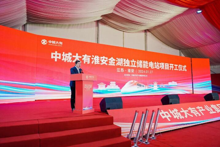 本網(wǎng)訊 1月27日上午,中城大有產(chǎn)業(yè)集團(tuán)有限公司江蘇首個(gè)開(kāi)工的淮安金湖150MW/300MWh獨(dú)立儲(chǔ)能電站項(xiàng)目開(kāi)工儀式隆重舉行。深圳新四軍研究會(huì)會(huì)長(zhǎng)少將軍銜郭建軍,淮安市總工會(huì)黨組成員副主席張修和,淮安市總工會(huì)駐會(huì)產(chǎn)業(yè)工會(huì)主任、四級(jí)調(diào)研員劉峰,中共金湖縣委常委、縣人民政府黨組成員楊鴻明,金湖縣總工會(huì)主席束小平,金湖縣銀涂鎮(zhèn)黨委書(shū)記沈明忠,金湖縣銀涂鎮(zhèn)黨委副書(shū)記、鎮(zhèn)長(zhǎng)楊陽(yáng),南京六合經(jīng)濟(jì)開(kāi)發(fā)區(qū)副主任楊坤,安徽蚌埠市固鎮(zhèn)縣人大常委副主任高正薇,棗莊薛城區(qū)能源局局長(zhǎng)曹偉,淮安清江浦區(qū)融投集團(tuán)沈琦超,安徽旌德經(jīng)開(kāi)區(qū)黨工委書(shū)記、管委會(huì)主任傅世恩,中城大有產(chǎn)業(yè)集團(tuán)有限公司董事長(zhǎng)吳發(fā)福,中城大有產(chǎn)業(yè)集團(tuán)有限公司黨委書(shū)記張金培等有關(guān)領(lǐng)導(dǎo)出席并見(jiàn)證開(kāi)工儀式。