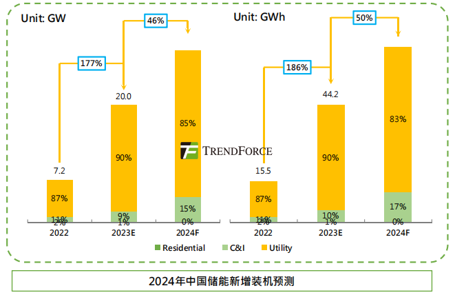 中國裝機(jī)預(yù)測:據(jù)集邦咨詢預(yù)測,2024年中國儲(chǔ)能新增裝機(jī)將達(dá)29.2GW/66.3GWh,其中工商業(yè)儲(chǔ)能有望達(dá)到4.3GW/11.2GWh。