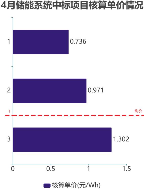 ※ 4月儲(chǔ)能EPC中標(biāo)核算單價(jià)情況 來(lái)源:星球儲(chǔ)能所