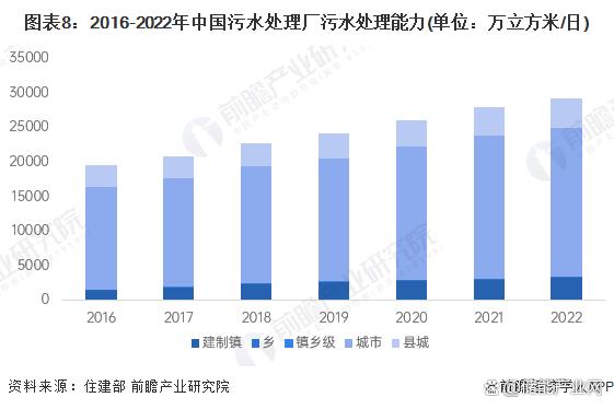 此外,2016-2022年,我國污水排放總量持續(xù)提升,2022年,污水排放量達(dá)到1099億立方米,同比增長1.7%。