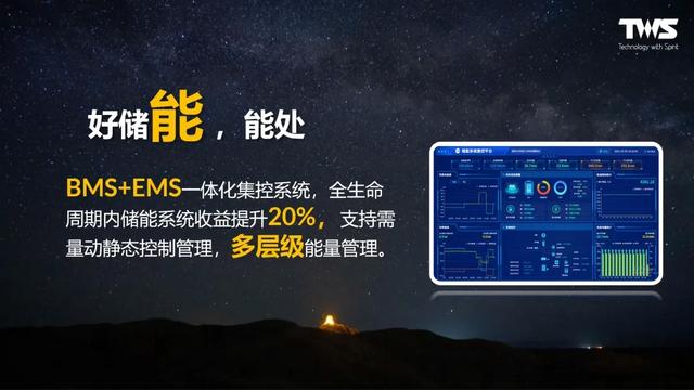 新品BMS+EMS采用一體化集控系統(tǒng),使得全生命周期內(nèi)儲能系統(tǒng)收益提升20%;并且支持需量動靜態(tài)控制管理,做到多層級能量管理;結(jié)合智能優(yōu)化算法和云平臺遠(yuǎn)程監(jiān)控,AI模型自學(xué)習(xí)優(yōu)化、實時診斷健康狀態(tài)、出具數(shù)據(jù)報告分析,以精準(zhǔn)科學(xué)的“能源管理方案”助力工商業(yè)儲能高效設(shè)計運營。