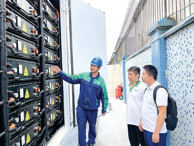 工作人員介紹眾儲(chǔ)格林精密儲(chǔ)能電站?;葜萑?qǐng)?bào)記者謝菁菁 攝