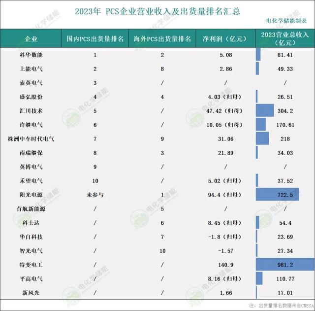 據(jù)CNESA數(shù)據(jù),2023年度,國內(nèi)市場中,儲能PCS出貨量排名前十位的中國企業(yè),依次為:科華數(shù)能、上能電氣、索英電氣、盛弘股份、匯川技術(shù)、許繼電氣、株洲中車時代電氣、南瑞繼保、英博電氣和禾望電氣。