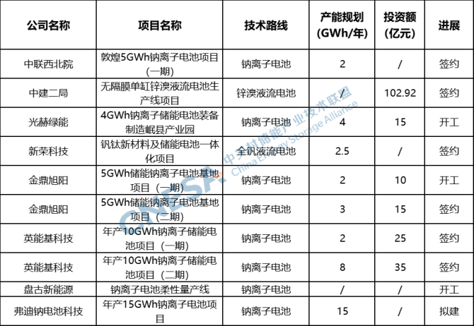 表 非鋰電池產能項目
