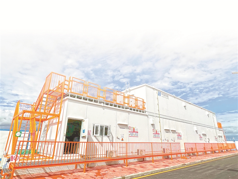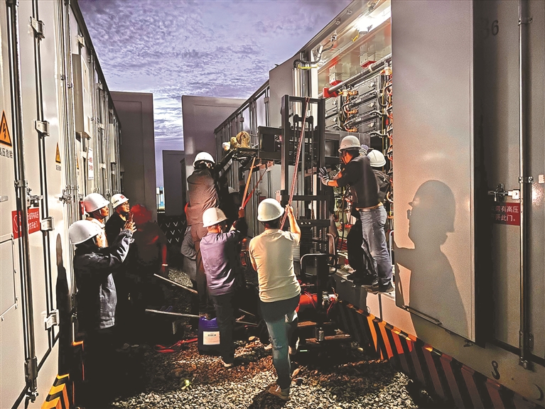 海南州儲能電站的35千伏開關站綜合預制艙。(中國華能集團供圖)