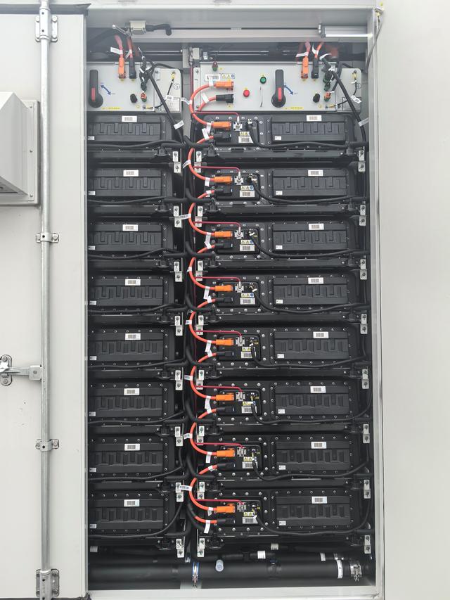 在潞城仁和儲(chǔ)能電站園區(qū)內(nèi)有20個(gè)電化學(xué)儲(chǔ)能單位,好似一個(gè)個(gè)由電池組成的“車廂”。打開“電池車廂”艙門,記者發(fā)現(xiàn),這個(gè)龐然大物是由多個(gè)小塊的磷酸鐵鋰電瓶組成的。每個(gè)儲(chǔ)能單位由2個(gè)小倉組成,每個(gè)倉內(nèi)有24簇電池包,每簇電池包內(nèi)有8塊電池,這些電池的壽命約在8-10年。
