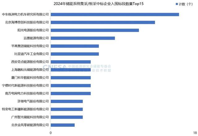 圖3:2024年儲能系統集采/框采中標企業(yè)入圍標段數量TOP15