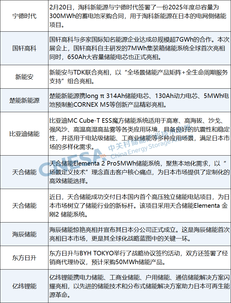 日本正加速可再生能源與儲能技術應用,但是日本獨特的地理環(huán)境、高密度的城市環(huán)境以及嚴苛的防災標準對儲能系統(tǒng)的安全性、可靠性、經(jīng)濟性提出更高要求。中國儲能企業(yè)針對當?shù)靥攸c,推出因地制宜的解決方案。在近期舉辦的日本展會期間,寧德時代、國軒高科、東方日升等紛紛簽約海外大單。