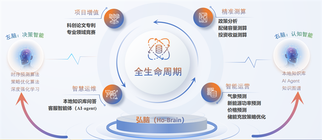 弘正儲(chǔ)能的創(chuàng)新突破在于構(gòu)建了決策智能與認(rèn)知智能的協(xié)同架構(gòu):基于大模型的“右腦”實(shí)現(xiàn)系統(tǒng)認(rèn)知躍遷,依托AI算法的“左腦”負(fù)責(zé)實(shí)時(shí)決策優(yōu)化。這種“雙腦”協(xié)同架構(gòu)貫穿儲(chǔ)能系統(tǒng)的全生命周期,從項(xiàng)目測(cè)算的精準(zhǔn)建模,到電站運(yùn)營(yíng)的動(dòng)態(tài)優(yōu)化,再到系統(tǒng)運(yùn)維的智能化升級(jí),形成完整的價(jià)值閉環(huán)。