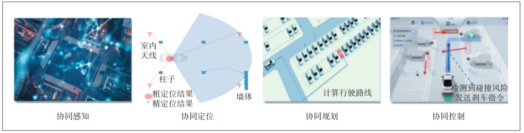 典型場(chǎng)景如智慧泊車,通過協(xié)同感知、協(xié)同定位、協(xié)同規(guī)劃和協(xié)同控制等技術(shù)實(shí)現(xiàn)高效、智能的停車管理和服務(wù)(見圖1)。智慧泊車的技術(shù)核心是根據(jù)多源傳感器異構(gòu)算法聯(lián)合感知的異步動(dòng)態(tài)協(xié)同感知系統(tǒng),基于場(chǎng)側(cè)的無線通信技術(shù)和車輛即時(shí)定位與地圖構(gòu)建技術(shù)的協(xié)同定位系統(tǒng),同時(shí)基于先驗(yàn)地圖和實(shí)時(shí)路況的全局路徑調(diào)度和車輛感知的局部軌跡規(guī)劃的協(xié)同系統(tǒng),以及場(chǎng)端原始感知數(shù)據(jù)及預(yù)測(cè)與車輛實(shí)時(shí)規(guī)劃軌跡的實(shí)時(shí)干涉控制系統(tǒng),實(shí)現(xiàn)車路云一體化的泊車服務(wù)。