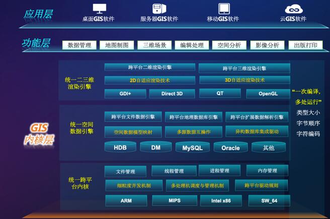 在“雙輪驅動”戰(zhàn)略思想下,MapGIS 10.5 Pro產品應運而生,基于統(tǒng)一的跨平臺內核,實現了全國產化體系架構和X86系統(tǒng)架構的“雙輪驅動”,構建全國產化GIS平臺和全空間智能GIS平臺兩大自主可控產品,延續(xù)MapGIS 10.5云端融合的產品體系,強化九州中國芯,提升全空間智能GIS技術,并推出組件式、搭建式、配置式三大敏捷開發(fā)方式,為用戶提供持續(xù)、穩(wěn)健、高效的技術支撐,為行業(yè)應用賦能。