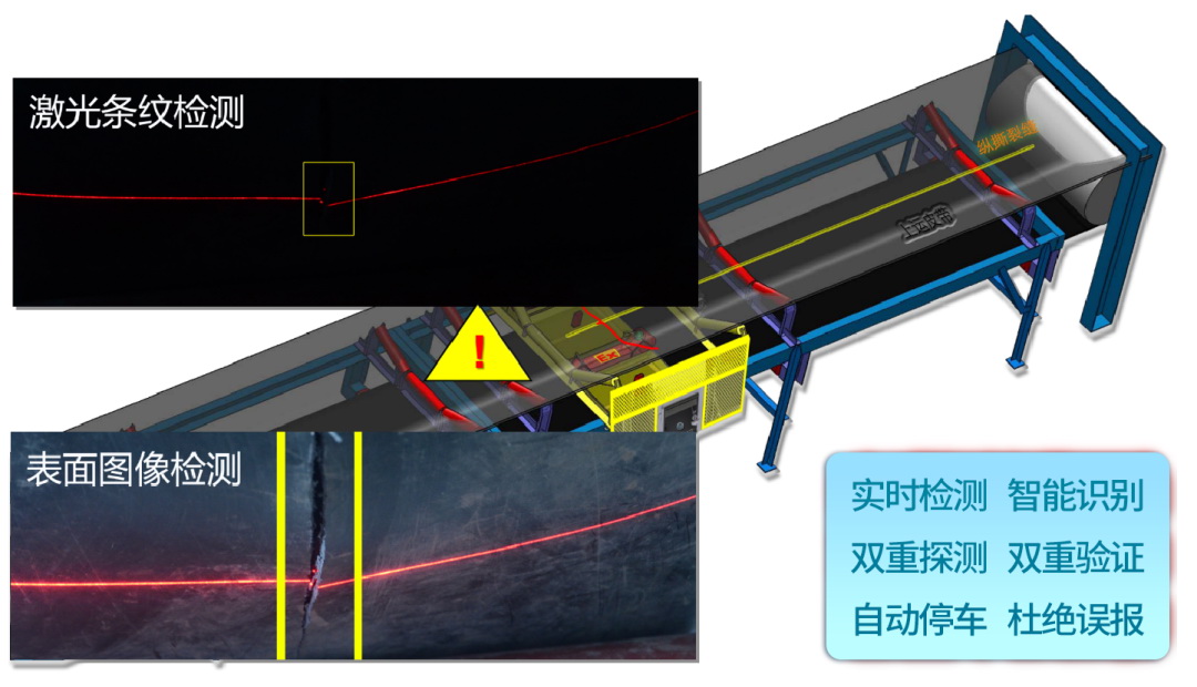 斗輪機操作人員識別驗證采用深度學(xué)習(xí)算法,支持離線比對,人臉比對時間<0.2s/人,人臉比對準(zhǔn)確率≥99%;輸送帶縱向撕裂檢測裝置使用激光束掃描皮帶表面,相機采集圖像信息,獨立鑒定,相互驗證,當(dāng)兩種手段100%確認(rèn)了縱向撕裂發(fā)生,系統(tǒng)才進(jìn)行報警。