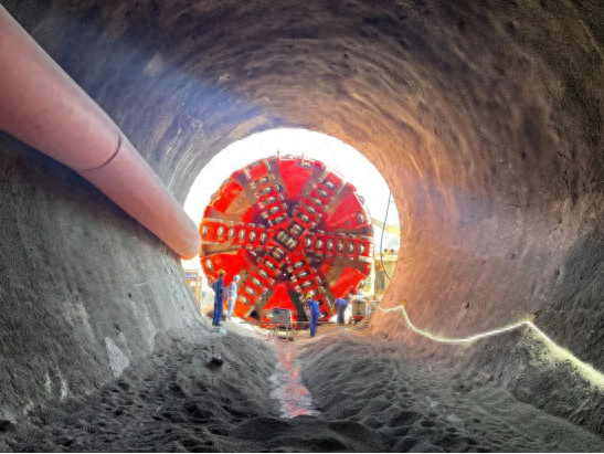 近日,中交天和為都江堰市供排水系統(tǒng)提升北區(qū)供水廠引水隧洞工程研制的刀盤直徑4.1米TBM掘進(jìn)長度突破1500米。針對工程大坡度向下掘進(jìn)及可能出現(xiàn)的大流量涌水特性,加裝防溜車和抽排水設(shè)施,實(shí)現(xiàn)TBM在隧洞突涌水、硬巖、大坡度等復(fù)雜地質(zhì)條件下安全環(huán)保高效掘進(jìn)。同期,為萊索托高地引水工程34420米長輸水隧道掘進(jìn)研制的兩臺直徑5380毫米雙護(hù)盾TBM“大禹雪盾號”“大禹長鋒號”抵達(dá)現(xiàn)場。該工程作為萊索托和南非最大雙邊基礎(chǔ)設(shè)施項(xiàng)目,建成后不僅可解決南非用水緊張問題,還能帶動萊索托電力和水利事業(yè)發(fā)展,實(shí)現(xiàn)電力自給自足。