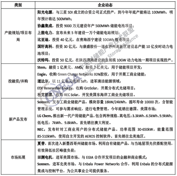 表:儲(chǔ)能企業(yè)動(dòng)態(tài)