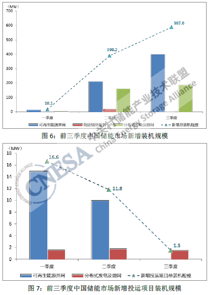 據(jù)中關(guān)村儲(chǔ)能產(chǎn)業(yè)技術(shù)聯(lián)盟(CNESA)項(xiàng)目庫(kù)的不完全統(tǒng)計(jì),2016年三季度,中國(guó)新增儲(chǔ)能項(xiàng)目(含投運(yùn)、在建、規(guī)劃中項(xiàng)目)14個(gè),裝機(jī)規(guī)模587.0MW,同比增長(zhǎng)586%,環(huán)比今年二季度增長(zhǎng)了50%。三季度新增項(xiàng)目主要分布在可再生能源并網(wǎng)和分布式發(fā)電及微網(wǎng)領(lǐng)域。