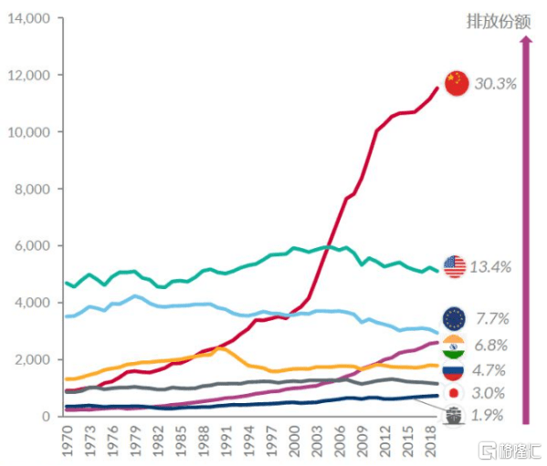 尤其是,中國(guó)、美國(guó)、歐盟等碳排放大國(guó)近幾年加快推進(jìn)“碳中和”實(shí)現(xiàn)進(jìn)程。根據(jù)公開數(shù)據(jù)顯示,2021年中國(guó)碳排放量占全球碳排放總量30.3%,美國(guó)占13.4%,歐盟占7.7%。